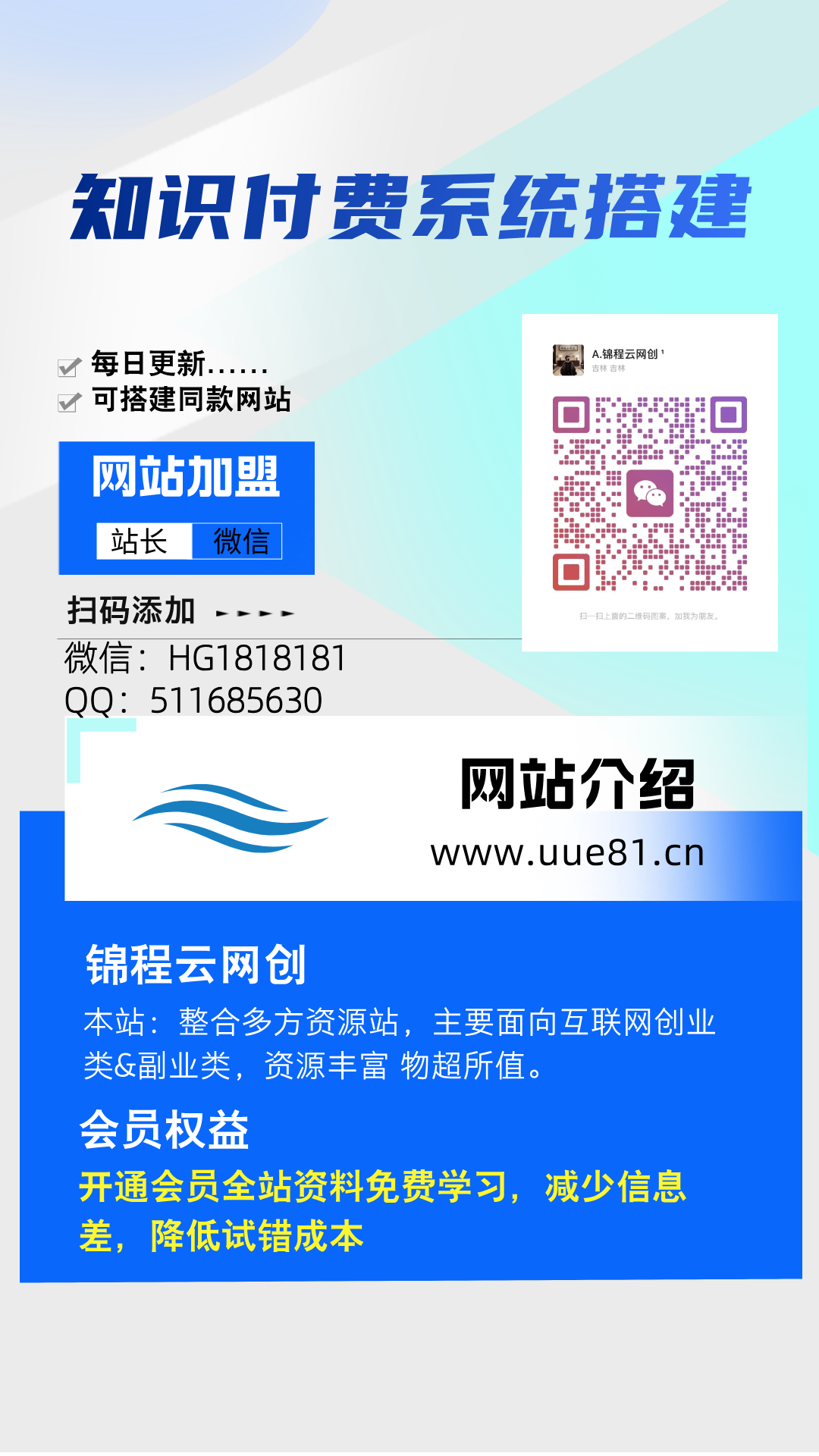 加盟锦程云网创,加盟搭建同款知识付费资源网站,实现长期稳定被动收入~